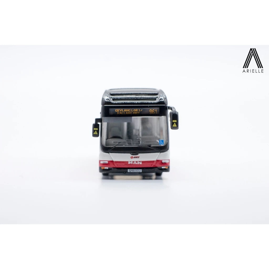 Singapore Bus MAN A22 (Euro V) SMRT Buses, Svc. 961 "SMRT's Newest MAN A22" LiveryBrand: Arielle Models SGScale: 1/110Dimensions: 9cm (L) x 2.5cm (W) x 3cm (H) per busMaterial: Diecast, ABSSKU: AM-A2210A