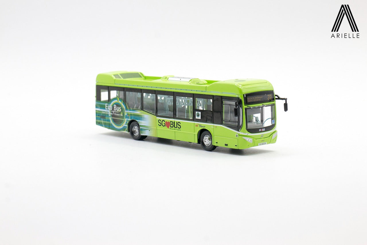 Singapore Bus - Volvo B5LH - Lush Green Eco-Bus SBST Svc. 272Brand: Arielle Models SGScale: 1/110Dimensions: 9cm (L) x 2.5cm (W) x 3cm (H) per busMaterial: Diecast, ABSSKU: AM-B5L06A