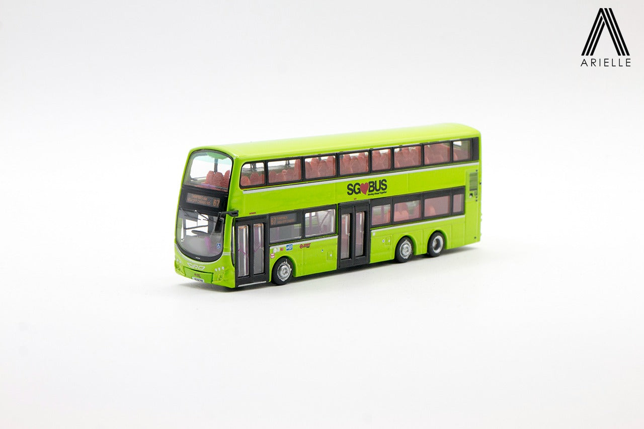 Singapore Bus - Volvo B9TL Lush Green - SMRT Buses Svc. 67Brand: Arielle Models SGScale: 1/110Dimensions: 9cm (L) x 2.5cm (W) x 3.5cm (H) per busMaterial: Diecast, ABSSKU: AM-B9T19B