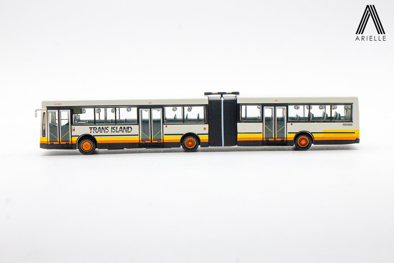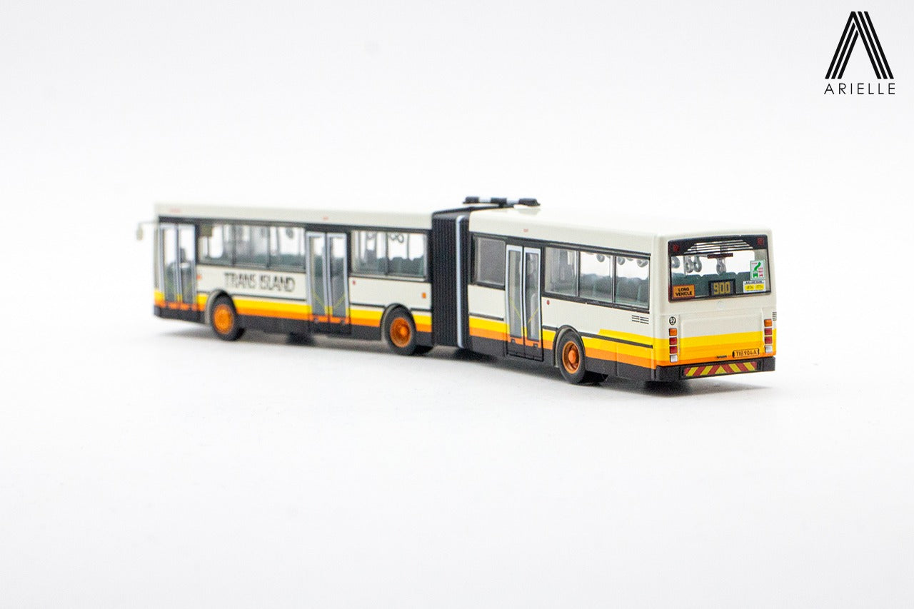 Singapore Bus - Mercedes-Benz O405G Mk.1 (Hispano) "Bendy Bus" - TIBS Svc. 900Brand: Arielle Models SGScale: 1/110Dimensions: 11.6cm (L) x 2.5cm (W) x 3cm (H) per busMaterial: Diecast, ABSSKU: AM-OG02C