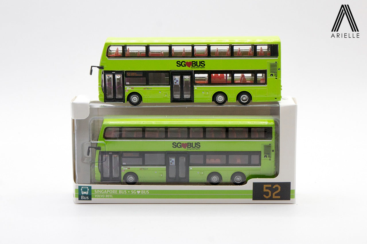 Product: Singapore Bus - Volvo B9TL Lush Green - SBST Svc. 52Brand: Arielle Models SGScale: 1/110Dimensions: 9cm (L) x 2.5cm (W) x 3.5cm (H) per busMaterial: Diecast, ABSSKU: AM-B9T19A